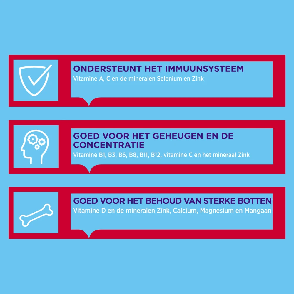 Dagravit Totaal 30 Xtra Vitaal 60+Dagravit Totaal 30 Vitaal 60+ is speciaal samengesteld voor 60-plussers voor dagelijkse ondersteuning van het immuunsysteem, de geestelijke veerkracht, is goed voor het geheugen en de concentratie en het behoud van sterke botten.Ondersteunt het immuunsysteemDraagt bij aan de geestelijke veerkrachtOndersteund het geheugen en de concentratieDraagt bij aan een normale energiestofwisselingBevat geen conserveermiddelen, lactose en geur- & smaakstoffen