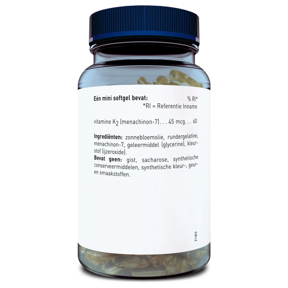 Ondersteunt de bloedstolling, goed voor de bottenDe bacteriën die van nature in onze darmen voorkomen produceren in beperkte mate vitamine K2, echter hiervan komt maar weinig in het lichaam terecht. In sommige gevallen kan aanvulling zinvol zijn. Het Japanse sojaproduct natto is een rijke bron van vitamine K2. Vitamine K2 draagt bij aan behoud van sterke botten en helpt bij de normale bloedstolling. Door de kleine softgel is K2 gemakkelijk te slikken.